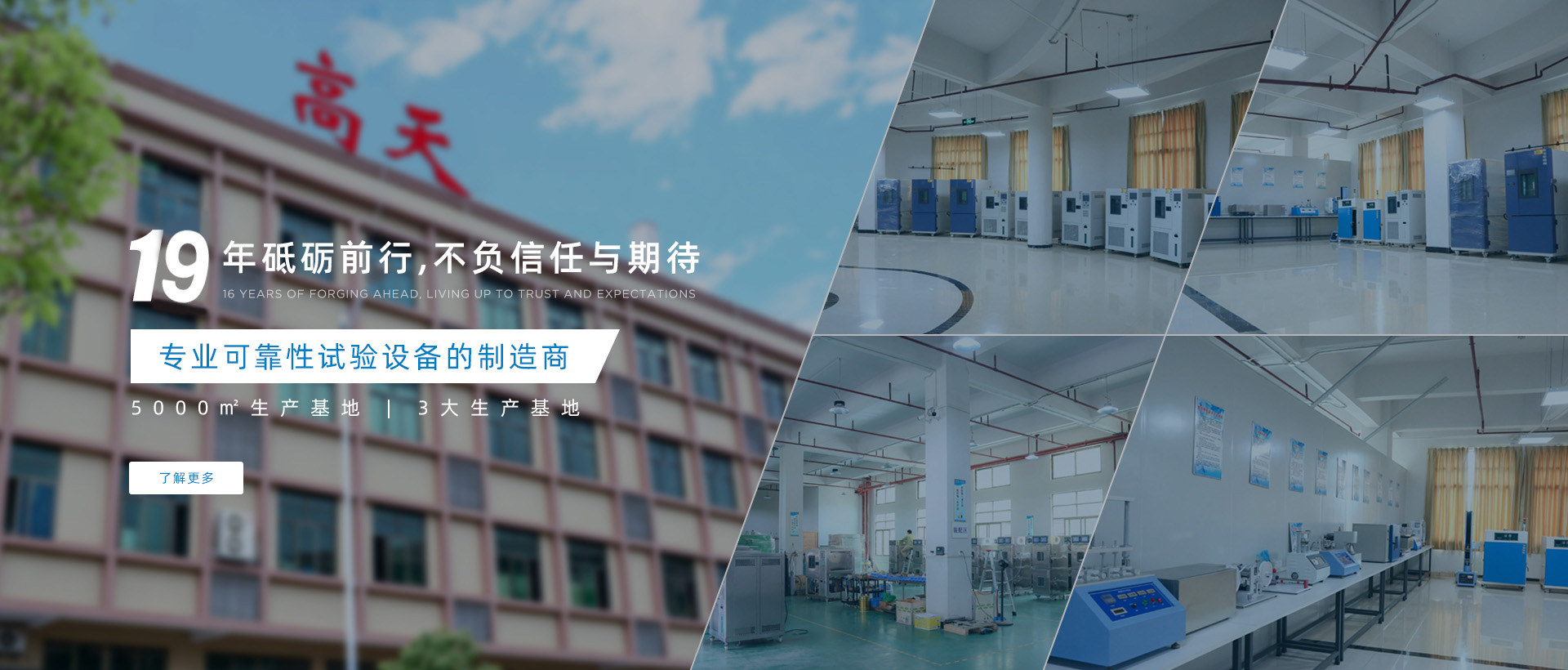 東莞市高天試驗設備有限公司是一家可靠性試驗設備的制造商,我們專注于可靠性試驗已有19余年,在此期間,我們竭盡所能,努力為客戶提供完善的實驗室規(guī)劃方案,匹配質優(yōu)價廉的試驗設備。高天擁有完整的研發(fā)團隊,其中有很多人都躋身試驗設備行業多年,能為顧客提供完善的技術方案,以幫助廣大客戶在確保其產品品質的前提下,有效降低經營成本,提升經營競爭優(yōu)勢。高天生產的設備種類眾多,同時擁有實用新型專利證書,銷售范圍覆蓋全國。公司自成立以來堅決以精美的外觀設計,認真務實的工作精神,良好周到的后續(xù)服務,贏得了客戶良好的口碑。我們將一如既往,堅持以“誠信經營”為...